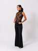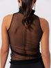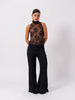 DELICATE LACE TOP WITH TULLE AND FLORAL DETAILS, FEATURING A HIGH NECKLINE AND SHEER STRAPS. THE BACK IS DESIGNED IN TULLE WITHOUT LACE AND FINISHED WITH A CENTRAL SEAM AS A SUBTLE DETAIL.