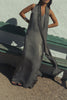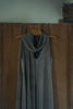 LONG MATT SATIN DRESS WITH WIDE STRAPS, FEATURING A DEEP V-NECKLINE AND AN INTEGRATED DRAPED SCARF-LIKE CAPE IN MATCHING TONES, CRAFTED FROM A UNIQUE TEXTURED FABRIC. THE FABRIC IS HAND-DYED USING AN ARTISANAL TECHNIQUE, MAKING EACH PIECE ONE-OF-A-KIND — COLOR PLACEMENT MAY VARY SLIGHTLY FROM ONE GARMENT TO ANOTHER.